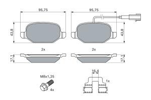Set placute frana spate BOSCH pentru ALFA ROMEO MITO 0.9-1.6D 08.08-10.18, inaltime 43.8 mm, latime 95.8 mm, grosime 17.1 mm