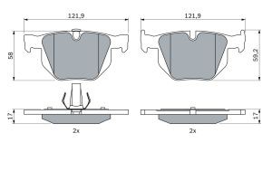 Set placute frana spate BOSCH pentru BMW X5 E70 F15 F85 X6 E71 E72 F16 F86, inaltime 58.2 mm, latime 122.0 mm, grosime 17.0 mm