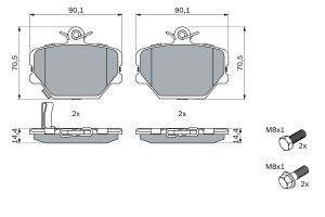 Set placute frana fata BOSCH SMART CABRIO CITY-COUPE CROSSBLADE FORTWO ROADSTER 0.6-Electric 07.98 70.5mm x 90.1mm x 14.4mm