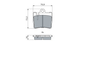 Set placute frana spate BOSCH pentru MERCEDES S (C215), S (W220) 2.8-6.3 10.98-03.06, ECE-R90, 72.2 mm x 70.9 mm x 16.0 mm