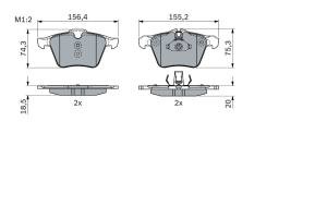 Set placute frana fata BOSCH pentru JAGUAR F-TYPE, XF I, XF SPORTBRAKE, XJ, XK II 2.0-5.0 03.06, dimensiuni 75.3 mm x 156.4 mm x 18.5 mm
