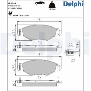 Set placute frana fata DELPHI pentru CITROEN XSARA/HATCHBACK, NISSAN KUBISTAR, PEUGEOT 206, 206+, 306, 306/HATCHBACK 1.1-1.9D 06.94