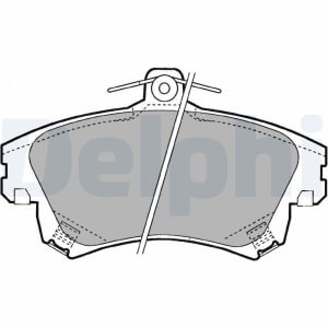 Set placute frana fata DELPHI cu tampon de amortizare pentru VOLVO S40 I, V40; MITSUBISHI CARISMA, COLT VI; SMART FORFOUR 1.3-2.0