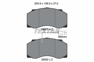 Set placute frana fata WABCO 1600 V-G DAF 55 CS107M-CS173M 11.95-12.00 numar WVA 29077 grosime 27.0 mm latime 204.6 mm inaltime 106.0 mm