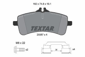 Set placute frana TEXTAR Spate MERCEDES S (W222, V222, X222) 4.0/4.7/6.0 02.14 - Inaltime 74.8 mm, Latime 162.0 mm, Grosime 19.1 mm