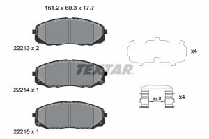 Set placute frana fata KIA SEDONA III 3.3 09.14- 161.2x60.3x17.3 mm TEXTAR SUMITOMO cu accesorii senzori uzura