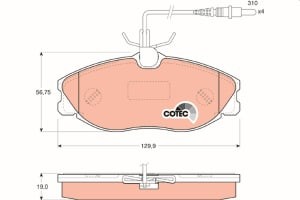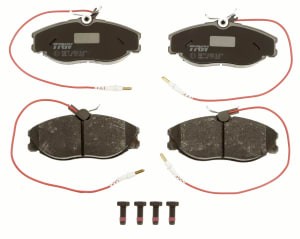Set placute frana fata TRW MOTO cu suruburi etrier pentru PEUGEOT 406, 607 1.9D-3.0 11.95-08.05, dimensiuni 56.8x129.9x19.0 mm