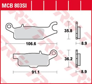 Set placute frana disc TRW MOTO offroad sinterizate metalic compatibile Yamaha 106.6 mm lungime 35.8 mm inaltime 8.9 mm grosime