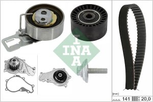 Set pompa apa + curea dintata INA pentru DS 3, DS 4, DS 5, CITROEN BERLINGO, C3 1.2-1.6D 01.08, latime 20 mm, 141 dinti