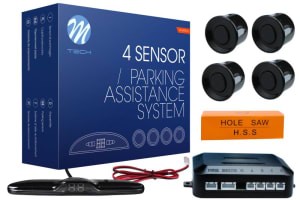 Set senzor parcare spate M-TECH CP24B 4 buc display/corn negru diametru 21,5 mm 12 V posibilitate vopsire