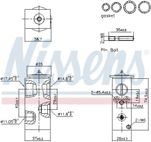 Supapa expansiune clima NISSENS pentru DS DS 7, CITROEN BERLINGO, C4 GRAND PICASSO II, C4 PICASSO II, C5 AIRCROSS, diametre admisie 11.0mm, 14.6mm, evacuare 11.8mm, 17.5mm