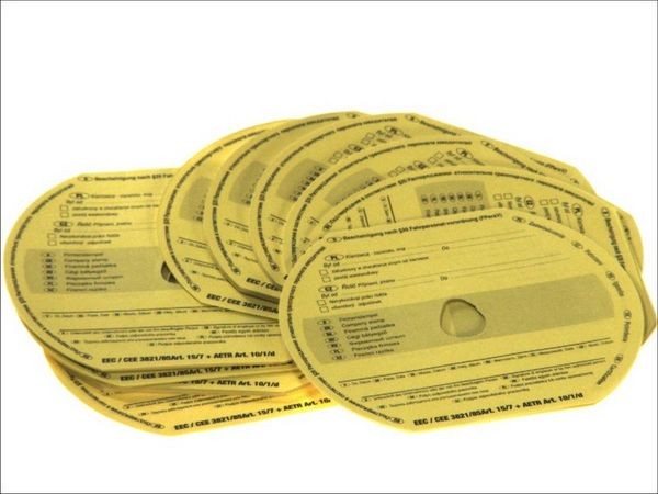 BORG-HICO graphing tachograph disc (holiday pay, medical, shield certificate), orange or yellow