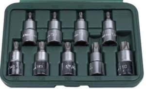 set tubulare cu bit 1 / 2 TORX 9 piese profile cu L = 55mm gaura in cutie plastic, dimensiuni TH20-TH60