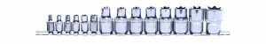 Sockets set E-TORX, socket / drive: 1/2; 1/4", 14 pcs, socket TORX/E-TORX size: E10, E11, E12, E14, E16, E18, E20, E24, E4, E5, E6, E7, E8, packaging: bar