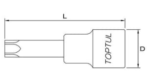 Cheie tubulară TOPTUL 1/2" TORX T45 lungime 120 mm Cr-V + S2 satin cromat profesională 23,9 mm