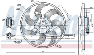Ventilator radiator NISSENS OPEL VECTRA B 2.0D/2.2D 06.97-07.03 diametru exterior 295.0 mm diametru 312.0 mm 12.0 V 7 palete